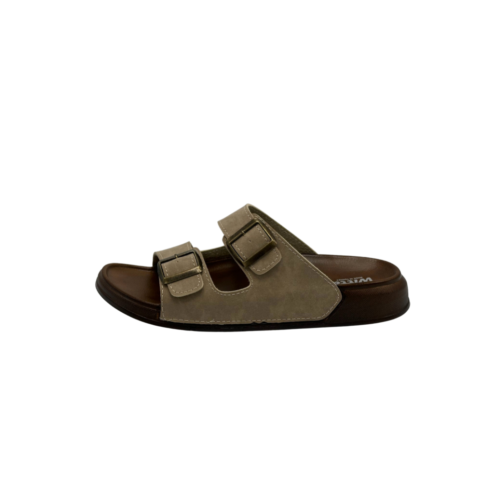 •  Deri Çift Bant Anatomik Bej Erkek Terlik