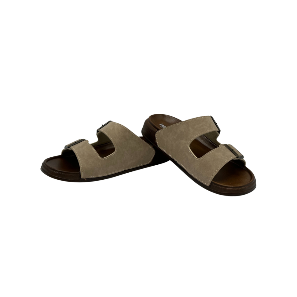 Deri Çift Bant Anatomik Bej Erkek Terlik