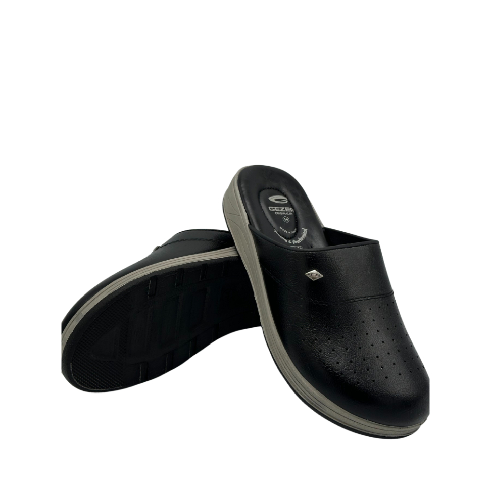 Gezer Sabo Hemşire Terlikleri Ortopedik, Alt Tabanı Poliüretan Hammaddesinden, Üst Kısım (Saya) Suni Deriden, İç tabanı Suni Deriden oluşmaktadır. Ortopedik Hemşire Terliği, Hastane için Terlik arasında En Rahat Hastane Terliği arasında olup ve Hastane Terliği Ortopedik oluşuyla Ev ve Günlük kullanımda oldukça rahattır.