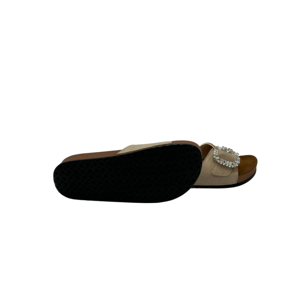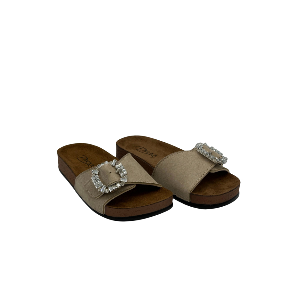 - Klasik tasarımıyla her ortamda rahatlıkla tercih edilebilen tek tokalı kadife desenli ortopedik terlik.